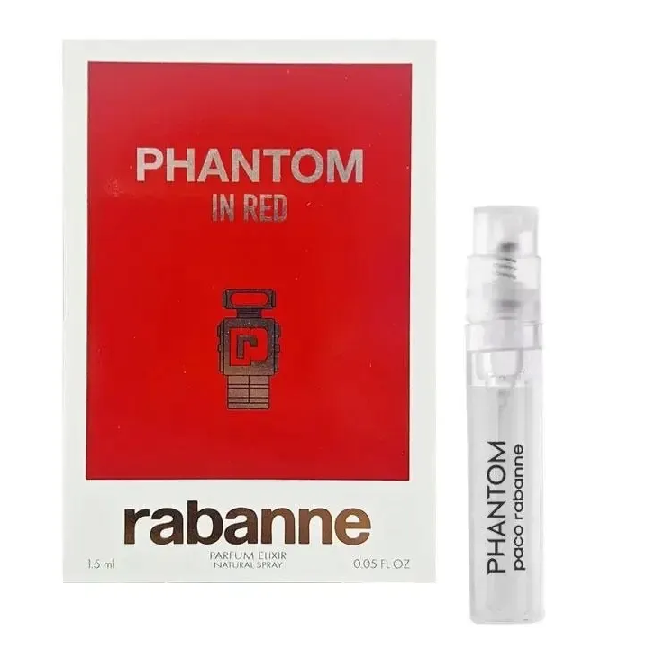 Rabanne Phantom In Red Parfum Elixir 1.5 ml to luksusowa pr?bka intensywnej, nowoczesnej kompozycji zapachowej dla m?czyzn. Zapach stanowi odwa?n?, bardziej zmys?ow? ods?on? linii Phantom, ??cz?c futurystyczny styl z g??bokim, orientalno-drzewnym charakterem.